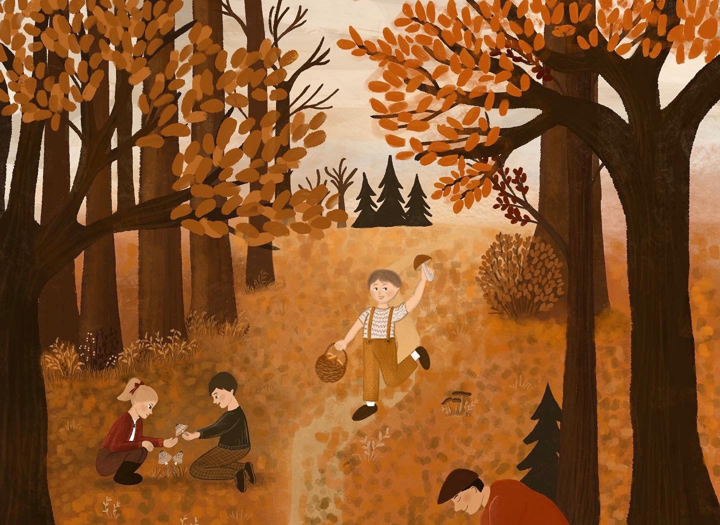 Pobegni v svet ilustracij, kjer se prepletajo nežnost, nostalgični spomini in spreminjanje letnih časov.